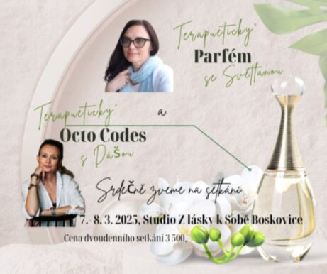 Srdečně zvu na setkání, které jsme zvolily na dny 7.- 8. 3. 2025, takže můžeme společně oslavit Mezinárodní Den Žen . A jak jinak oslavit den žen než s Octo Codes a terapeutickými parfémy .